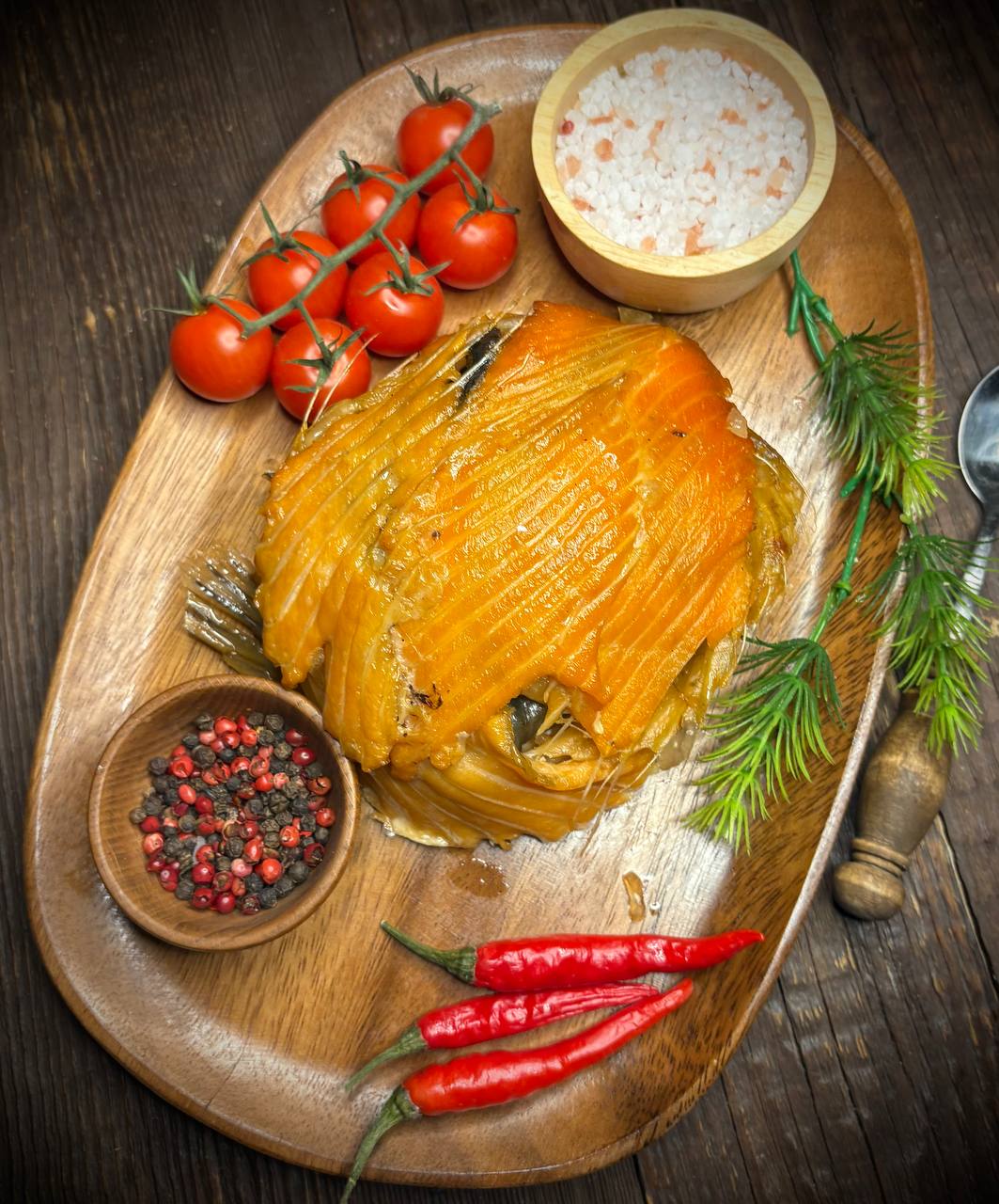 Нежная ароматная Форель холодного копчения подойдет для рыбной тарелки